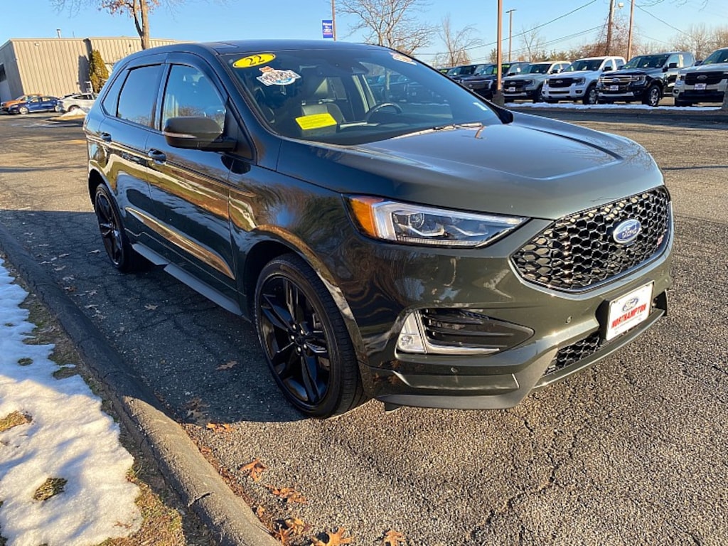 2022 FORD EDGE ST AWD. 2.7L V6 ECOBOOST ENGINE W/ 7-SPD AUTOMATIC TRANSMISSION. FORGED GREEN EXTERIOR W/ PREMIUM BLACK LEATHER AND SUEDE INTERIOR. ALL-WHEEL DRIVE. CARFAX 1-OWNER. CLEAN CARFAX HISTORY REPORT. 21" PREMIUM PAINTED ALUMINUM WHEELS. PANORAMIC VISTA POWER MOONROOF. ADAPTIVE CRUISE CONTROL. EVASIVE STEERING ASSIST. HEATED STEERING WHEEL. PERIMETER ALARM. REMOTE START SYSTEM. UNIVERSAL GARAGE DOOR OPENER. CONNECTED BUILT IN NAVIGATION. WIRELESS CHARGING PAD. DUAL EXHAUST. LED FOG LAMPS AND TAILLAMPS. ADAPTIVE LED HEADLAMPS W/ SIGNATURE LIGHTING. HANDS-FREE POWER LIFTGATE. POWER WINDOWS AND DOOR LOCKS. DUAL POWER HEATED MIRRORS W/ MEMORY AND APPROACH LAMPS. PRIVACY GLASS. RAIN-SENSING WIPERS. 2ND ROW HEATED SEATS. AMBIENT INTERIOR LIGHTING. 60/40 EASYFOLD REAR BENCH SEAT. DUAL-ZONE ELECTRONIC AUTOMATIC CLIMATE CONTROL. POWER TILT & TELESCOPING HEATED STEERING WHEEL W/ MEMORY. HEATED AND COOLED FRONT SEATS. 10-WAY POWER DRIVER SEAT W/ MEMORY AND 6-WAY POWER PASSENGER SEAT. "ST" BOLSTERED BUCKET SEATS. USB (A) AND (C) PORTS. PREMIUM B&O 12-SPEAKER SOUND SYSTEM. CLASS II TRAILER TOW PKG. FORD CO-PILOT360. FORDPASS CONNECT 4GWI-FI HOTSPOT TELEMATICS MODEM. FORD PERFORMANCE TUNED SUSPENSION. FRONT 180-DEGREE CAMERA W/ SPLIT VIEW. INTELLIGENT ACCESS W/ PUSH BUTTON START. REAR PARKING SENSORS. REAR VIEW CAMERA. SIRIUS SATELLITE RADIO. HANDS FREE VOICE ACTIVATED FORD SYNC4 SYSTEM W/ 12" INFOTAINMENT TOUCHSCREEN SYSTEM. LATCH CHILD SAFETY SYSTEM. ALL NEW TIRES MOUNTED AND BALANCED. ALL NEW BRAKES INSTALLED. FORD GOLD CERTIFIED PRE-OWNED VEHICLE WHICH INCLUDES 172-POINT SAFETY INSPECTION PERFORMED BY FORD TRAINED AND CERTIFIED TECHNICIANS. 12-MONTH / 12,000-MILE COMPREHENSIVE LIMITED WARRANTY COVERAGE. 7-YEAR / 100,000-MILE POWERTRAIN LIMITED WARRANTY COVERAGE WHICH INCLUDES COVERAGE UNTIL NOVEMBER 2029 OR 100,000 MIILES. 14-DAY / 1,000-MILE MONEY BACK GUARANTEE. 24-HOUR ROADSIDE ASSISTANCE. 22,000 FORDPASS REWARDS POINTS TO USE TOWARDS SCHEDULED MAINTENANCE VISITS OR OTHER REWARDS. CARFAX VEHICLE HISTORY REPORT. SIRIRUS XM SATELLITE COMPLIMENTARY 3-MONTH TRIAL. A FULL TANK OF FUEL, FRESH OIL AND FILTER, AND NEW WIPER BLADES. SERVICE AVAILABLE AT ANY FORD DEALER IN THE 50-STATES.