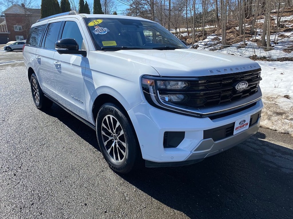 2025 FORD EXPEDITION PLATINUM 4WD MAX 7-PASSENGER. 3.5L V6 ECOBOOST ENGINE W/ 10-SPD AUTOMATIC TRANSMISSION. OXFORD WHITE EXTERIOR W/ PREMIUM BLACK ONYX LEATHER INTERIOR. CARFAX 1-OWNER VEHICLE. CLEAN CARFAX HISTORY REPORT. 4-WHEEL DRIVE. 3RD ROW SEATING W/ CAPACITY FOR 7-PEOPLE. 20" EBONY MACHINED ALUMINUM WHEELS. DAYTIME RUNNING LAMPS. BLUECRUISE HANDS FREE DRIVING CAPABLE / EQUIPPED. FORD CO-PILOT360 ACTIVE. 360-DEGREE ZONE LIGHTING. FORD SPLIT REAR TAILGATE. HEAVY DUTY TRAILER TOW PACKAGE W/ TRAILER SWAY CONTROL. POWER PANORAMIC VISTA MOONROOF. PRIVACY GLASS. SIGNATURE GRILLE LIGHTING AND SIGNATURE TAILLAMPS. RAIN-SENSING WIPERS. POWER WINDOWS, DOOR LOCKS AND MIRRORS. 2ND ROW HEATED SEATS. 3RD ROW 40/20/40 FLEX SEAT W/ POWERFOLD. AMBIENT INTERIOR LIGHTING. CARGO MANAGEMENT SYSTEM. FLEX POWERED CONSOLE. POWER TILT & TELESCOPING LEATHER WRAPPED HEATED STEERING WHEEL W/ CRUISE CONTROL AND AUDIO CONTROLS AND MEMORY. HEATED & VENTILATE FRONT SEATS. DRIVER SEAT MEMORY SETTINGS. POWER ADJUSTABLE PEDALS W/ MEMORY SETTINGS. TRI-ZONE AUTOMATIC CLIMATE CONTROL. 24" PANORAMIC DISPLAY INSTRUMENT PANEL. 13.2" CENTER CONSOLE INFOTAINMENT TOUCHSCREEN. INTELLIGENT 4WD SYSTEM. INTERSECTION ASSIST. PUSH-BUTTON START. SIRIUX XM SATELLITE RADIO. TERRAIN MANAGEMENT SYSTEM W/ SELECTABLE DRIVE MODES. WIRELESS CHARGING PAD. LATCH CHILD SAFETY SYSTEM. PERIMETER ALARM. 22MPG HWY RATED.