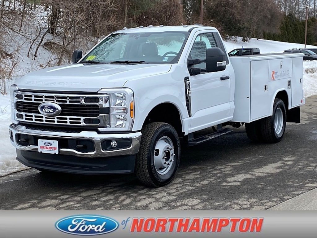 2026 Ford F-350 Cab & Chassis – Reading Classic II Service BodyProudly offered by Ford of Northampton, your Ford Pro dealership serving all of Western MA—not only with sales, but with mobile service and a full-service department to keep your fleet running strong.Built for demanding job sites and year-round commercial use, this 2026 Ford F-350 Cab & Chassis delivers serious capability, durability, and upfit versatility. Powered by the proven 7.3L V8 gas engine and paired with a TorqShift 10-speed automatic transmission, this truck is designed to handle heavy loads with confidence and long-term reliability.Equipped with a 4.30 ratio limited-slip rear axle and the 14,000-lb GVWR package, this F-350 is well suited for trades, fleet operations, and upfit-dependent businesses. The Snow Plow Prep Package, dual batteries, and exterior backup alarm make it ready for harsh conditions and winter operations, while the trailer brake controller and 7-way trailer connection support towing needs.Chassis Highlights:7.3L V8 Gas EngineTorqShift 10-Speed Automatic Transmission4.30 Ratio Limited-Slip Rear Axle14,000-lb GVWR PackagePreferred Equipment PackageSnow Plow Prep PackageTrailer Brake ControllerDual Battery SystemExterior Backup AlarmRear View CameraRemote StartXL Chrome PackageReading Classic II Service Body:Upfitted with a Reading Classic II steel service body, this truck offers organized, secure storage and job-ready durability.9-Foot Steel Service BodyCompartment Key Locking System7-Way Trailer ConnectionThis 2026 Ford F-350 Cab & Chassis with Reading Classic II service body is an excellent fit for general contractors, electricians, plumbers, HVAC technicians, excavation and site-work crews, municipal and public works departments, snow-removal operators, landscaping and hardscaping companies, utility maintenance teams, fleet service providers, and construction support businesses that require secure tool storage, strong payload capacity, and reliable towing performance. It’s also well suited for equipment installers, sign and lighting service companies, facilities maintenance operations, and mobile repair units that need a durable steel service body and a work-ready chassis capable of handling demanding daily use and seasonal workloads.